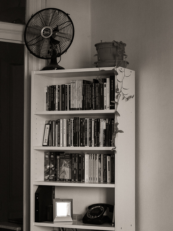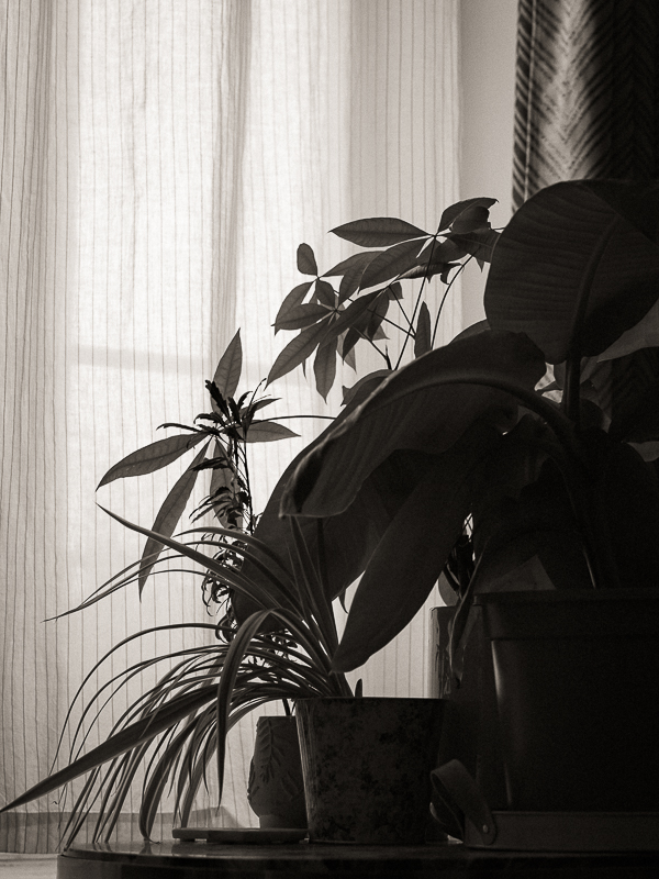 Mon parcours de vie, chaotique, fait que c’est la première fois de toute mon existence que je vis depuis aussi longtemps dans un appartement. Mais, photographiquement, interroger du regard un environnement que l’on connaît par cœur, banal à force d’usage quotidien, reste un exercice délicat. La clé selon moi, c’est l’émerveillement, avoir cette capacité, pas toujours comprise, à s’émerveiller de tout petits riens. Une lumière, un empilement de plans, un cadrage à l’équilibre. D’aucuns partent à l’autre bout du monde en quête d’un exotisme de masse, répété à l’infini dans des clichés sans âmes, d’une vacuité folle sauf à faire la tapageuse démonstration de son petit conformisme, chose qui doit être bien rassurante au fond. Moi, qui ne suis resté que moi, à l’instar d’un Saul Leiter, d’un André Kertész, d’une Claude Batho ou bien d’un Yannig Hédel, et comme l’écrivait si bien Michel Tournier, je me contente de mon peu, ce petit peu, que je découvre à chaque fois extraordinaire et fascinant.