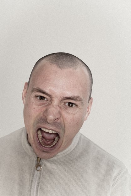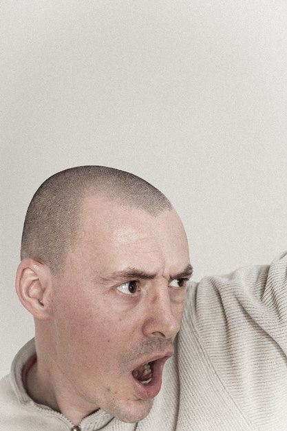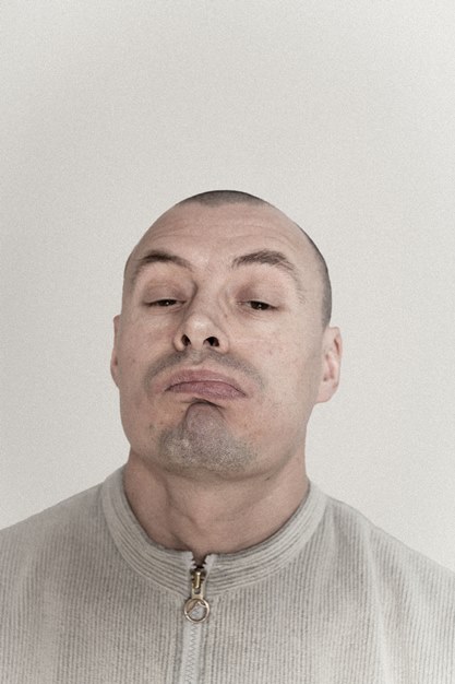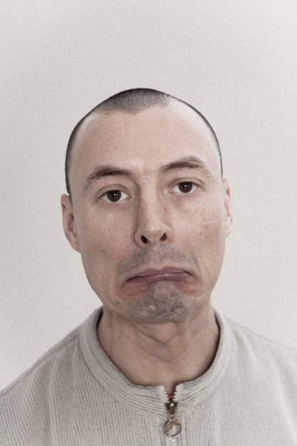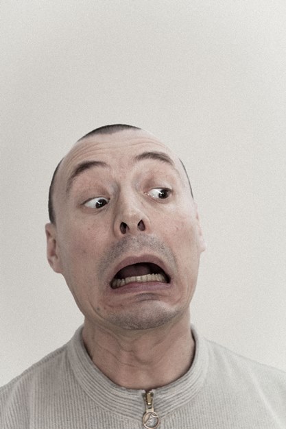 En imitant les expressions faciales déjà artificiellement produites via des électrodes par Duchenne de Boulogne [1], ou bien en suivant scrupuleusement les instructions d’une console de jeu pour la réalisation d’autoportraits, Thierry Egger photographie un double affublé du masque de son propre visage [2]. Et, ce faisant, fond, mallée, assouplit celui-ci jusqu’à ce que ses expressions n’aient plus rien à voir avec ses émois. Il rejoint ainsi le grotesque des émotions exacerbées des sculptures des Têtes de caractère de Franz Xaver Messerschmidt. Alors, loin des autoportraitistes systématiques, mais aussi des selfies, Thierry Egger ne retient finalement dans ces images que les variations quasi musicales de ses humeurs et « construit ainsi des fictions vivantes qui permettent de résister à la norme » [3].